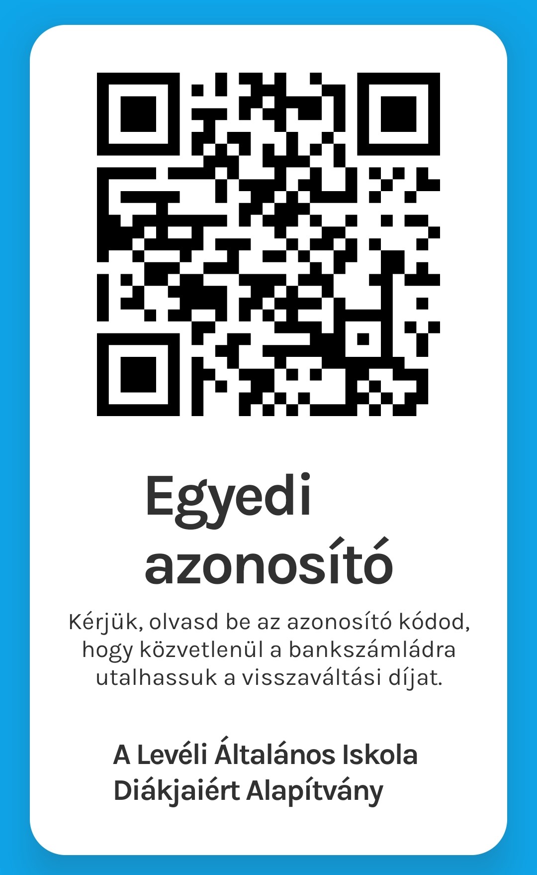 Amikor fém, műanyag vagy üveg palackot váltanak vissza egy RePont-automatánál, a fenti QR kód használatával alapítványunkat tudják segíteni.
